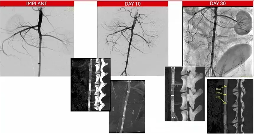 公司已经完成了多例动物实验,30天周期内的血管(包括穿支血管)通畅性很好、支架上无血栓形成;